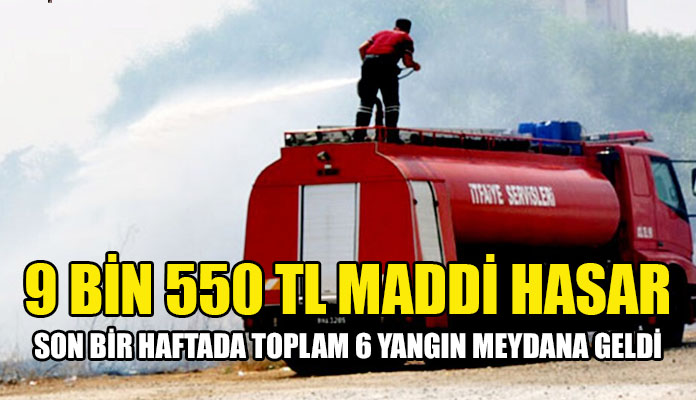 Ülkede son bir haftada meydana gelen altı yangın olayı, yaklaşık 9 bin 550 TL maddi zarara neden oldu.
