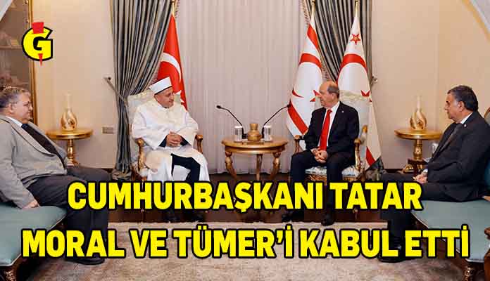 Cumhurbaşkanı Ersin Tatar, Din İşleri Başkanı Hakan Moral ve Vakıflar İdaresi Genel Müdürü Prof. Dr. Mustafa Tümer’i kabul etti.