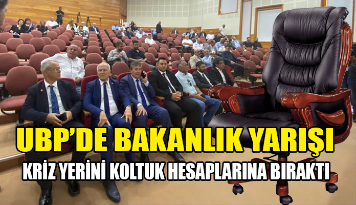 KRİZ YERİNİ KOLTUK HESAPLARINA BIRAKTI… ‘Koltuk kapma yarışı’ başlayınca Ulusal Birlik Partisi’nde yaşanan krizler de erken atlatıldı. UBP Parti Meclisi Ünal Üstel’e hükümet kurma yetkisini alkışlar eşliğinde verdi. Üstel’in yetkilendirilmesinin ardından gözler kurulacak olan UBP-DP-YDP hükümetinin kabinesinde kimlerin yer alacağına çevrildi. UBP’li vekiller kabinede yer alabilmek için adeta yarış içerisine girdi. UBP’nin tecrübeli isimlerinin yanı sıra, özellikle kaç dönemdir kabinede yer bulamayan kadın vekiller ve 23 Ocak seçimlerinde ilk kez Cumhuriyet Meclisi’ne giren yeni vekillerin de kabinede görev almak için sıraya girdikleri biliniyor.