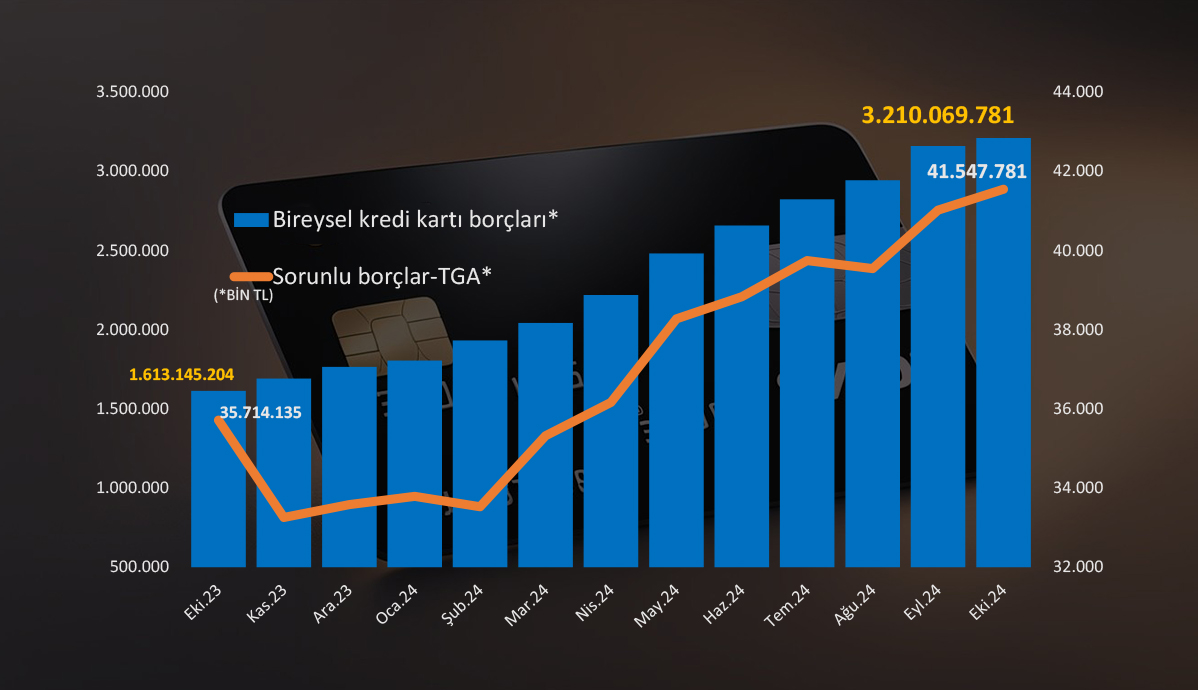 Ekim 2023-Ekim 2024 arasındaki dönemde kredi kartı borçları ikiye katlandı