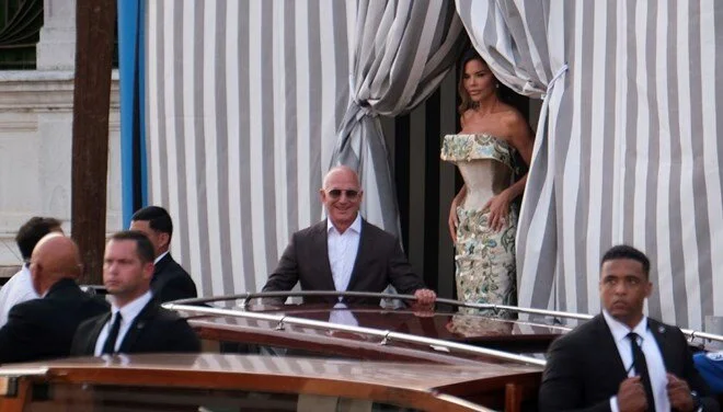 61 yaşındaki Bezos ve 55 yaşındaki eski spiker Lauren Sanchez’in düğününe karşı çıkanlar her gün yeni bir protesto gösterisine imza atarken, çiftin konukları tarihi şehre gelmeye başladı.
