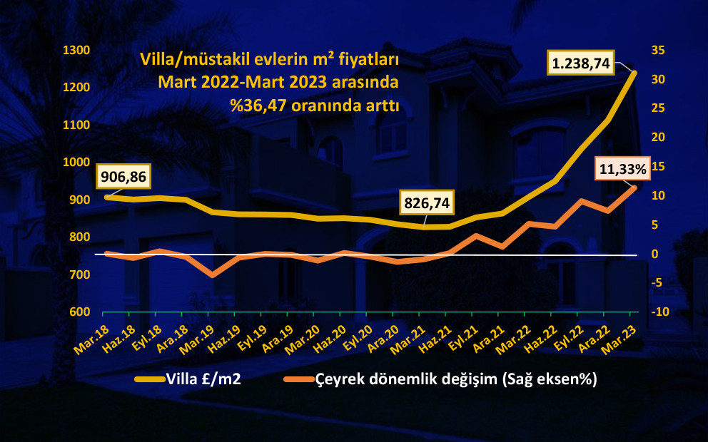 Kuzey Kıbrıs’taki villa fiyatları Mart 2023 sonu itibarıyla rekor seviyeye ulaştı