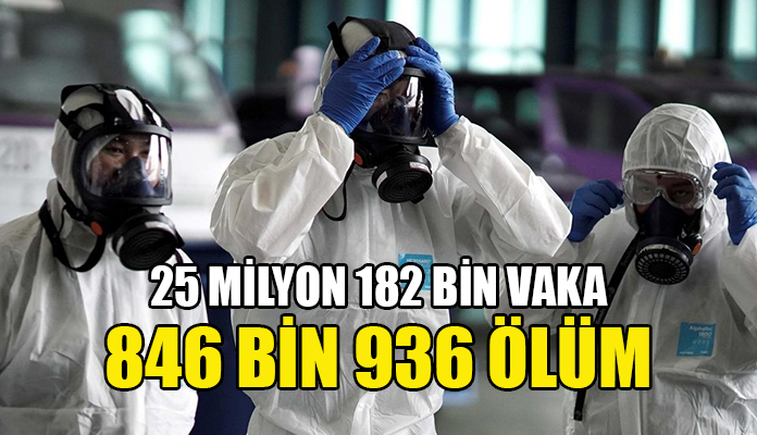 Vaka sayısı dünya genelinde 25 milyon 182 bin 313’e çıkarken, virüs saptanan 17 milyon 515 bin 59 kişi sağlığına kavuştu.