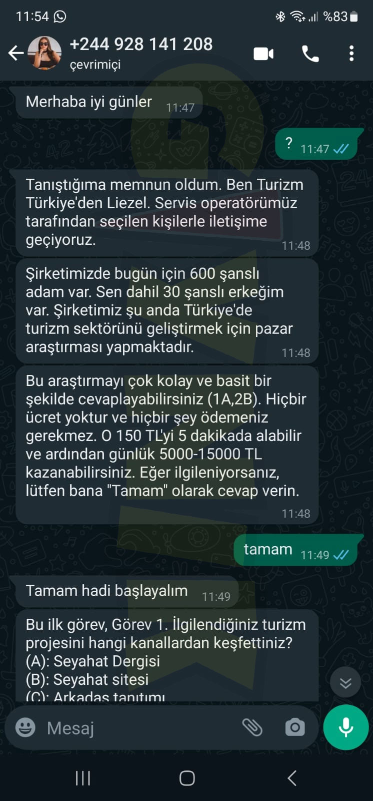 Whatsapp mesajlaşma uygulaması üzerinden yabancı numaralar ile ülkemizden bir çok kişiye ulaşan dolandırıcılar, ‘size para kazandırmak istiyoruz’ vaadiyle kişilerin banka hesaplarına ulaşmaya çalışıyor.