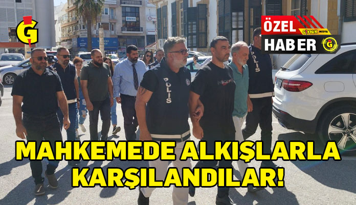 Yakınları, mahkeme avlusunda zanlıları alkışlarla karşıladı.