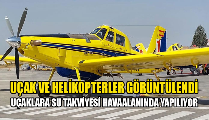 Mersinlik’teki yangınla mücadelede büyük görev alan yangın uçakları ve helikopterler Ercan Havalimanı’nda böyle görüntülendi