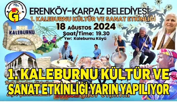 Erenköy-Karpaz Belediyesi’nin organize ettiği 1. Kaleburnu Kültür ve Sanat Etkinliği, yarın saat 19.30’da Kaleburnu Düğün Salonu’nda gerçekleştirilecek.