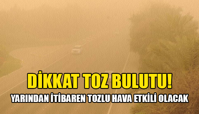 Meteoroloji Dairesi'nden yapılan açıklamada, Kuzey Afrika üzerinden taşınacak toz zerreciklerinin bölgede hava kirliliği yaratması beklendiği belirtilerek, toza karşı hassasiyeti olan vatandaşların tedbirli olmaları tavsiye edildi.