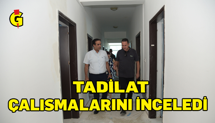 Merkezdeki tadilat çalışmalarını yapan firma temsilcileriyle binayı gezen Gardiyanoğlu’na ziyaretinde Sosyal Hizmetler Dairesi Müdürü Alev Ecevit eşlik etti.