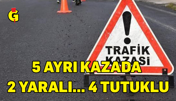 Ülke genelinde dün meydana gelen 5 ayrı trafik kazasında 2 kişi yaralandı, 4 sürücü tutuklandı.