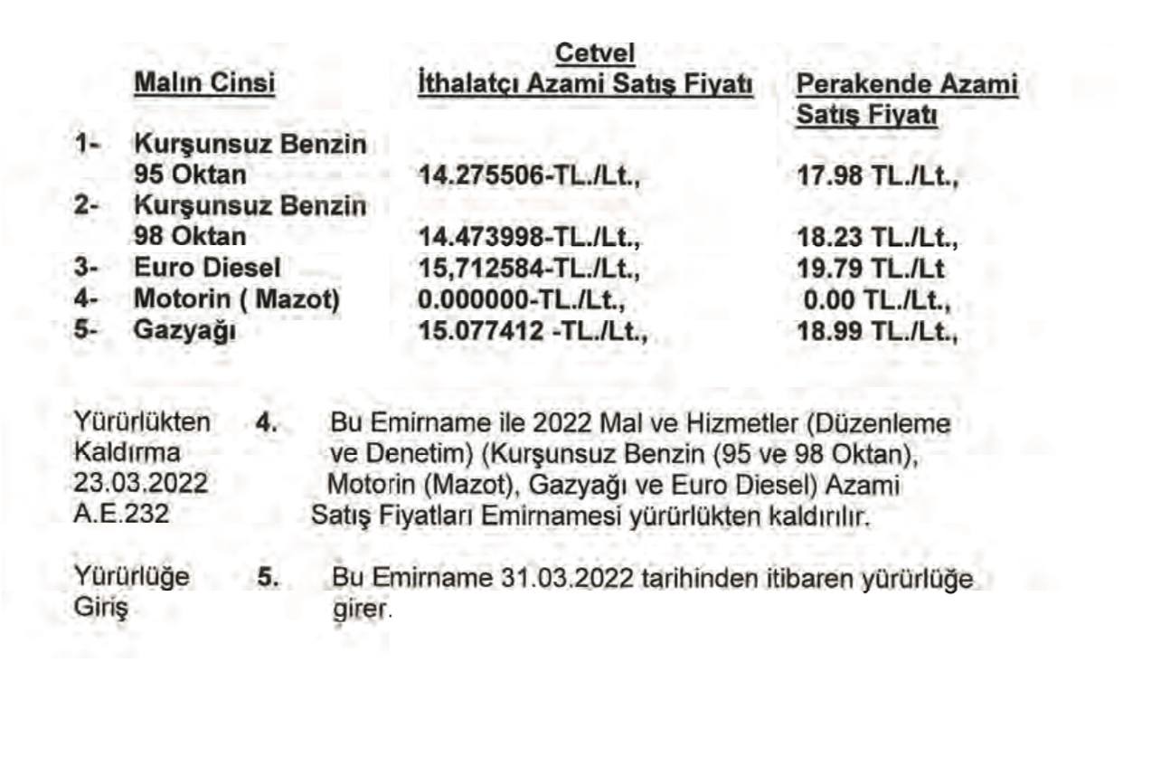 Yeni fiyatlar bu gece yarısından itibaren uygulanacak…