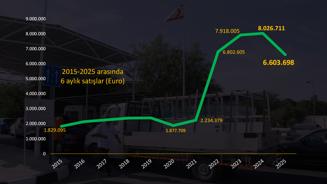 Yeşil Hat Tüzüğü kapsamında Kuzey Kıbrıs’tan Güney Kıbrıs’a yönelik mal satışında düşüş olduğu hesaplandı. Kıbrıs Türk Ticaret Odası’nın (KTTO) gecikmeli olarak açıkladığı Ocak-Haziran 2025 rakamlarına göre geçen yılın ilk yarısında Güney Kıbrıs’a 6 milyon 603 bin 698 Euroluk mal satışı yapıldı. 2025’in ilk yarısında elde edilen bu gelir, 2024 yılına göre %17.7 oranında daha düşük. Satışların sadece 2024’ün değil 2023 ve 2022 yıllarındaki rakamlarının da altında kaldığı saptandı. Altı aylık satış rakamları 2024 yılında rekor seviyeye çıkarak 8 milyon 026 bin Euro olurken, 2023’te 7 milyon 918 bin Euro; 2022’de ise 6 milyon 802 bin Euro düzeyinde kayıtlara geçmişti.