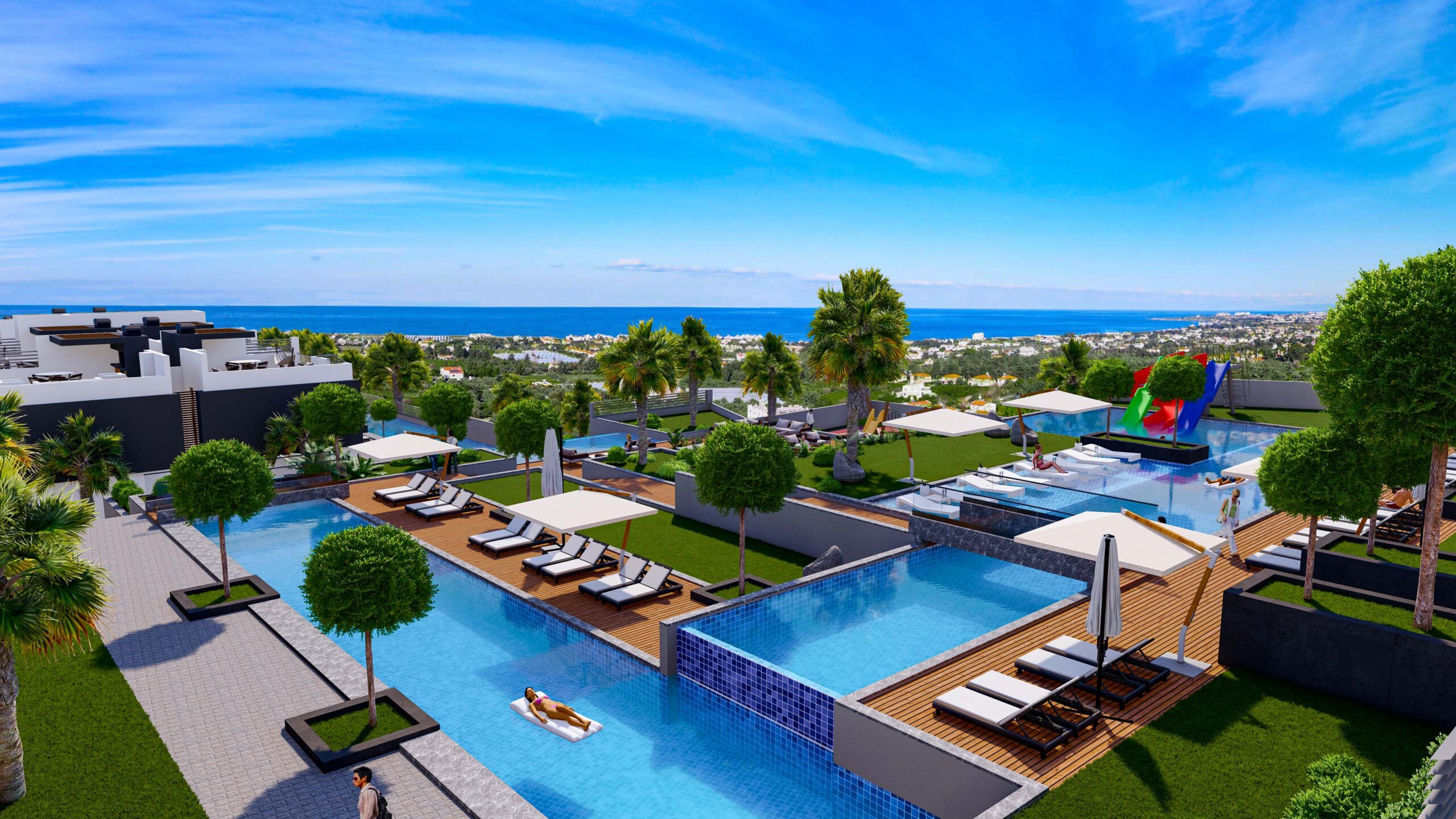 Kuzey Kıbrıs’ın turizm merkezi, Girne’nin batısında olan muhteşem proje, nefes kesen deniz ve dağ manzarasıyla 162 lüks daire ve villadan oluşuyor.