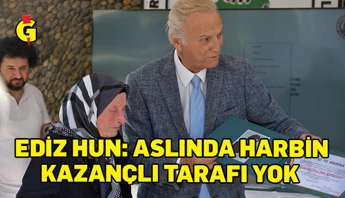 Sanatçı Ediz Hun da konuşmasına, herkesi selamlayarak, başladı. Hun, şehit yakınları ve ailelerle buluşmayı organize eden Hasan Taş’a teşekkür etti.