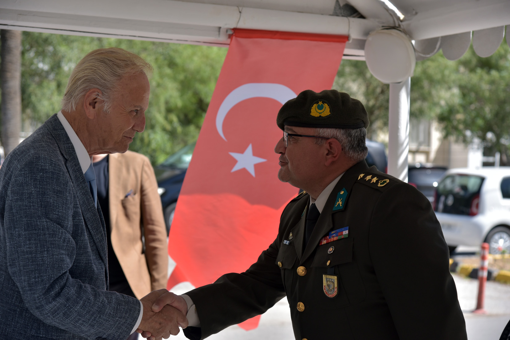 Kıbrıs Türk Barış Kuvvetleri Alay Komutanı Piyade Albay Umut Keskin ve eşi Ebru Keskin, Ediz Hun ve eşi Berna Hun ile şehit yakınları ve gazileri kapıda karşıladı.