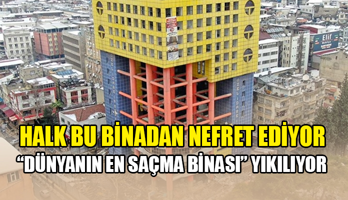 YAPILDIĞI GÜNDEN BERİ TARTIŞILIYOR… Binanın yıkım çalışmalarını yerinde inceleyen Büyükşehir Belediye Başkanı Hayrettin Güngör, “Bildiğiniz gibi bu bina çok tartışma konusu oldu ve Google arama motorunda da ‘Dünyanın en saçma binası’ olarak yer aldı. O bir tarafa burası o günün şartlarında 18 katlı olarak yapılmış. Yapıldığından bugüne kadar da tartışma konusu olmuş. Binanın şehir siluetini bozması, boşluk alanlarının çok olması nedeniyle Çevre, Şehircilik ve İklim Değişikliği Bakanlığı ile birlikte dönüşüm projesi başlattık.” dedi.