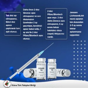 - 2 doz Pfizer/Biontech aşısı veya 2 doz Astra Zeneca aşısı olmuşsanız, 6 ay sonra tekrar hatırlatıcı doza (rapel) ihtiyacınız vardır.