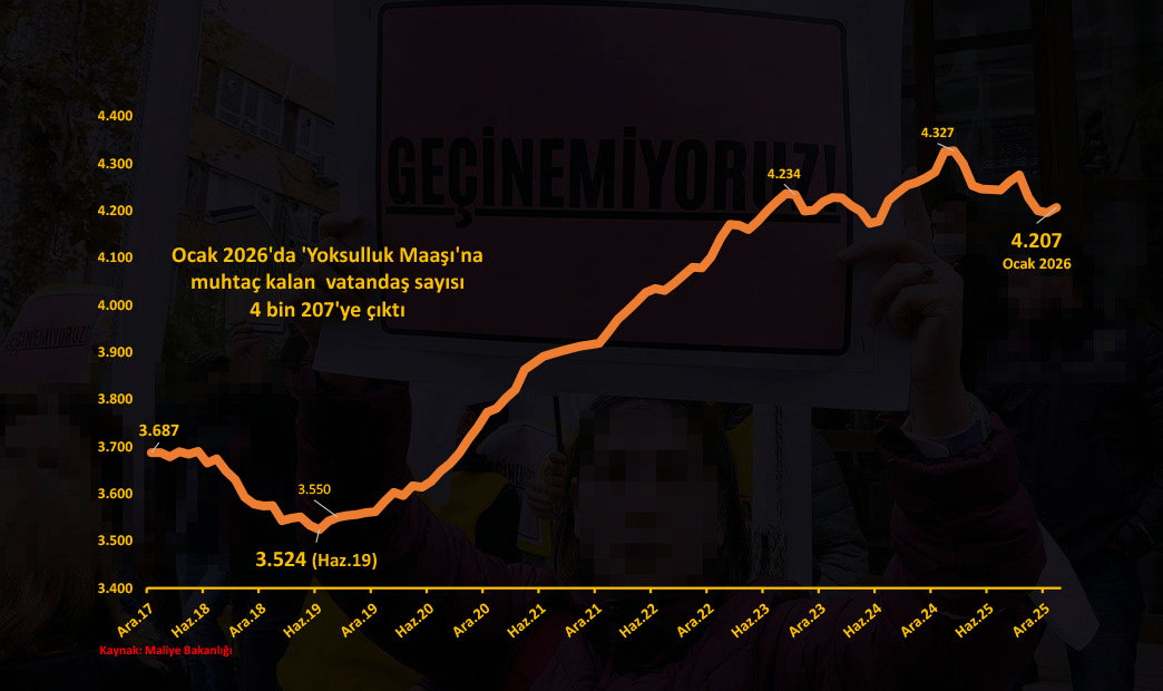 Ocak 2026 verilerine göre ülkede 4 bin 207 kişiye “yoksulluk” maaşı ödeniyor
