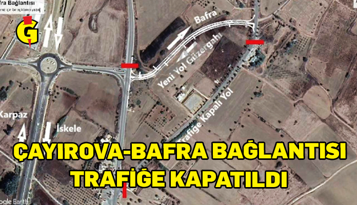 Çayırova- Bafra bağlantısı, kavşak ve kutu menfez yapımı nedeniyle bugünden itibaren trafiğe kapatıldı. Karayolları Dairesi Müdürlüğü tarafından yapılan duyuruya göre, trafik akışı alternatif güzergahtan devam edecek.