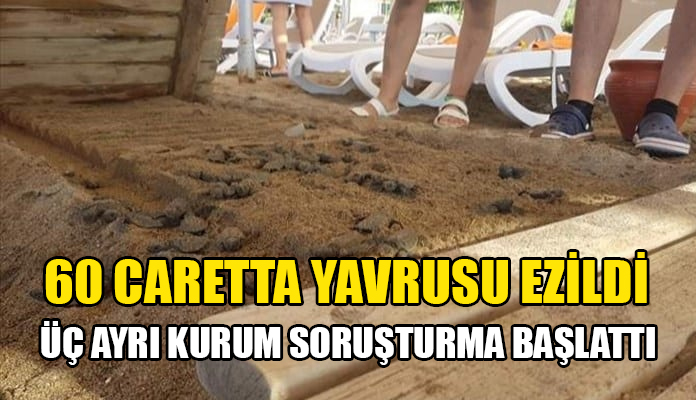 Antalya’da yumurtadan çıkan 60 caretta caretta yavrusunun bir otelin plajındaki ahşap yürüme bandının altında ezilip ölmesiyle ilgili soruşturma açıldı.