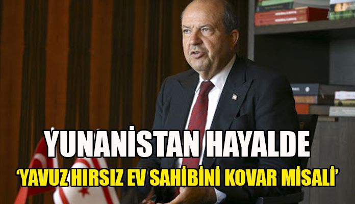‘Yavuz hırsız ev sahibini kovar’ misali, Yunanistan Türkiye’yi Kıbrıs’tan dışlayabileceğini, Kıbrıs Türk Halkı’nın egemenliği ile Devleti’ni yok sayabileceğini zannediyorsa hayal görüyor.
