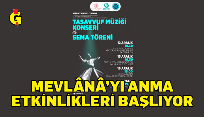 Anma etkinlikleri, 12–17 Aralık tarihleri arasında gerçekleştirilecek. Etkinlikler yarın saat 19.30’da Gazimağusa Rauf Raif Denktaş Kültür ve Kongre Sarayı’nda düzenlenecek tasavvuf müziği dinletisi ve sema gösterisiyle başlayacak.