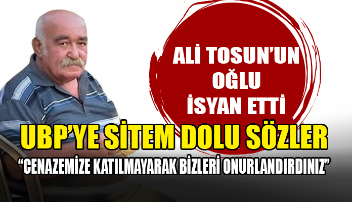 UBP defteri bizim için kapandı” diyen Ali Tosun, “Her seçimde kapımızı aşındıran ve cenazeye katılmayan siyasi arkadaşlar cenazemize katılmayarak bizleri onurlandırdınız” ifadeleri ile UBP’ye sitem etti.