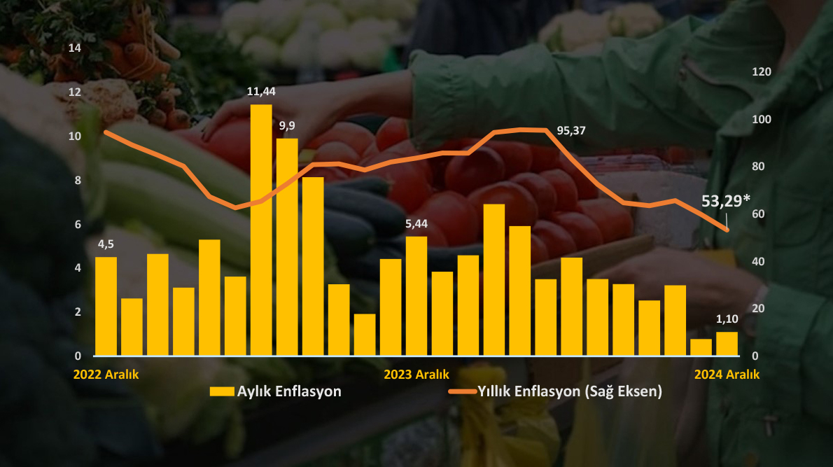 İstatistik Kurumu verilerine göre Aralık ayı enflasyonu %1.10, yıllık enflasyon %53.29 oldu