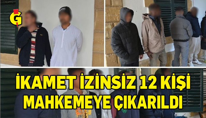 Lefkoşa, Gönyeli ve Demirhan’da gerçekleştirilen denetimlerde ülkede izinsiz ikamet ettikleri tespit edilerek tutuklanan yabancı uyruklu 12 kişi mahkemeye çıkarıldı. Zanlılar hakkında bir gün ek tutukluluk süresi alındı.