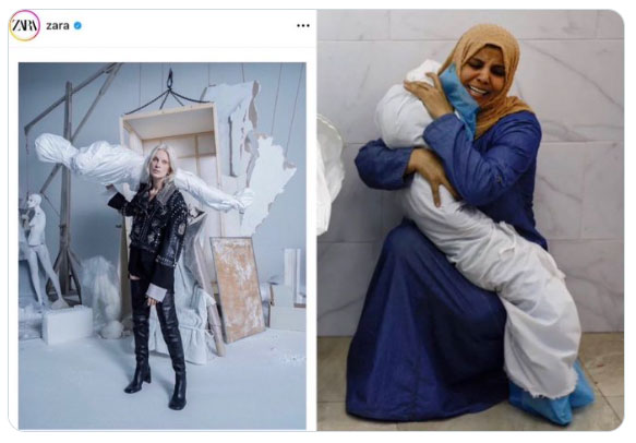 Zara’nın, “Gazze’de kefene sarılı çocuğunu kucaklayan Filistinli bir anneyi” andıran reklam görüntüleri, sosyal medya platformlarında “#BoycottZara” paylaşımlarını beraberinde getirdi.