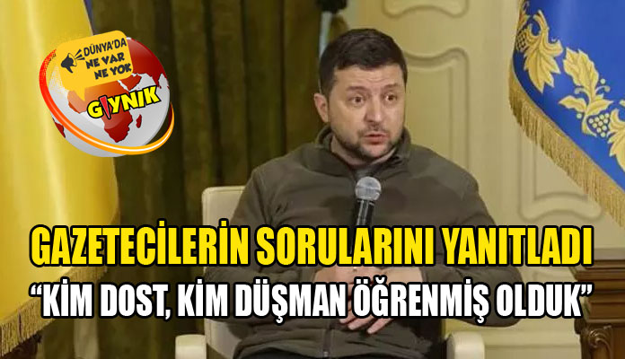Ukrayna Devlet Başkanı Vladimir Zelenski, gazetecilerle bir araya gelerek Rusya’nın devam eden saldırılarına ilişkin açıklama yaptı. Zelenski, “Savaştan sonra kim bizim dostumuz, kim düşmanımız öğrenmiş olduk” dedi.
